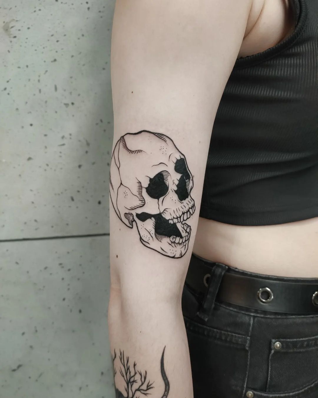 Alina spends a lot of time creating her own original projects, but outside tattooing she’s all about pop culture – games, anime, true crime podcasts, sci-fi and horror movies. She also dives deep into mythology, legends, occult themes. And you can clearly see all of that later in her tattoos.