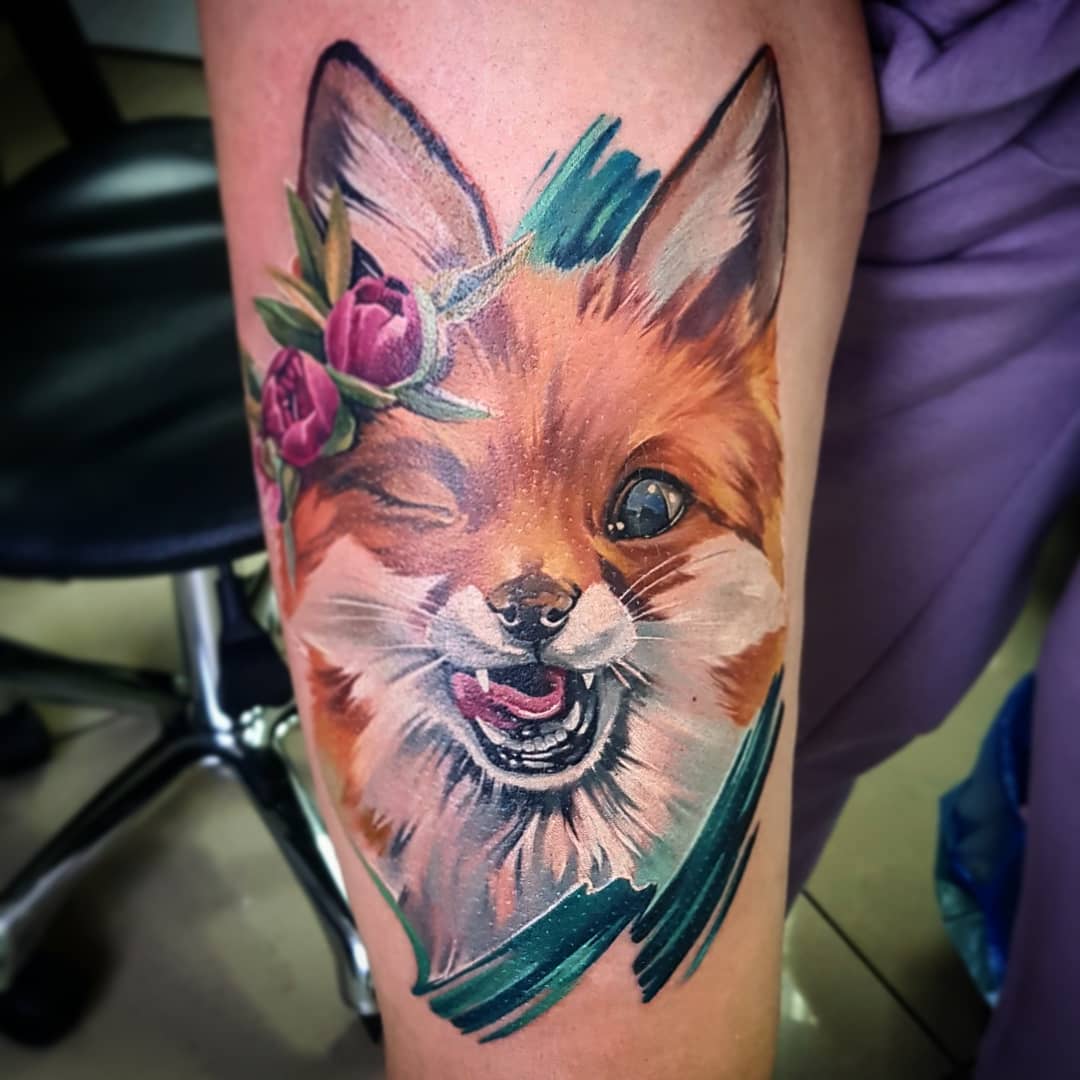 Colorful surrealist tattoo is a form of art that transcends the boundaries of reality, combining different elements and creating extraordinary compositions. In this technique, the tattoo artist can go far beyond the limits of imagination, merging elements from different worlds, such as animals with human characteristics, abstract figures, or mysterious symbols. This technique allows for creative freedom and experimentation with colors, resulting in extraordinary and unique tattoos.