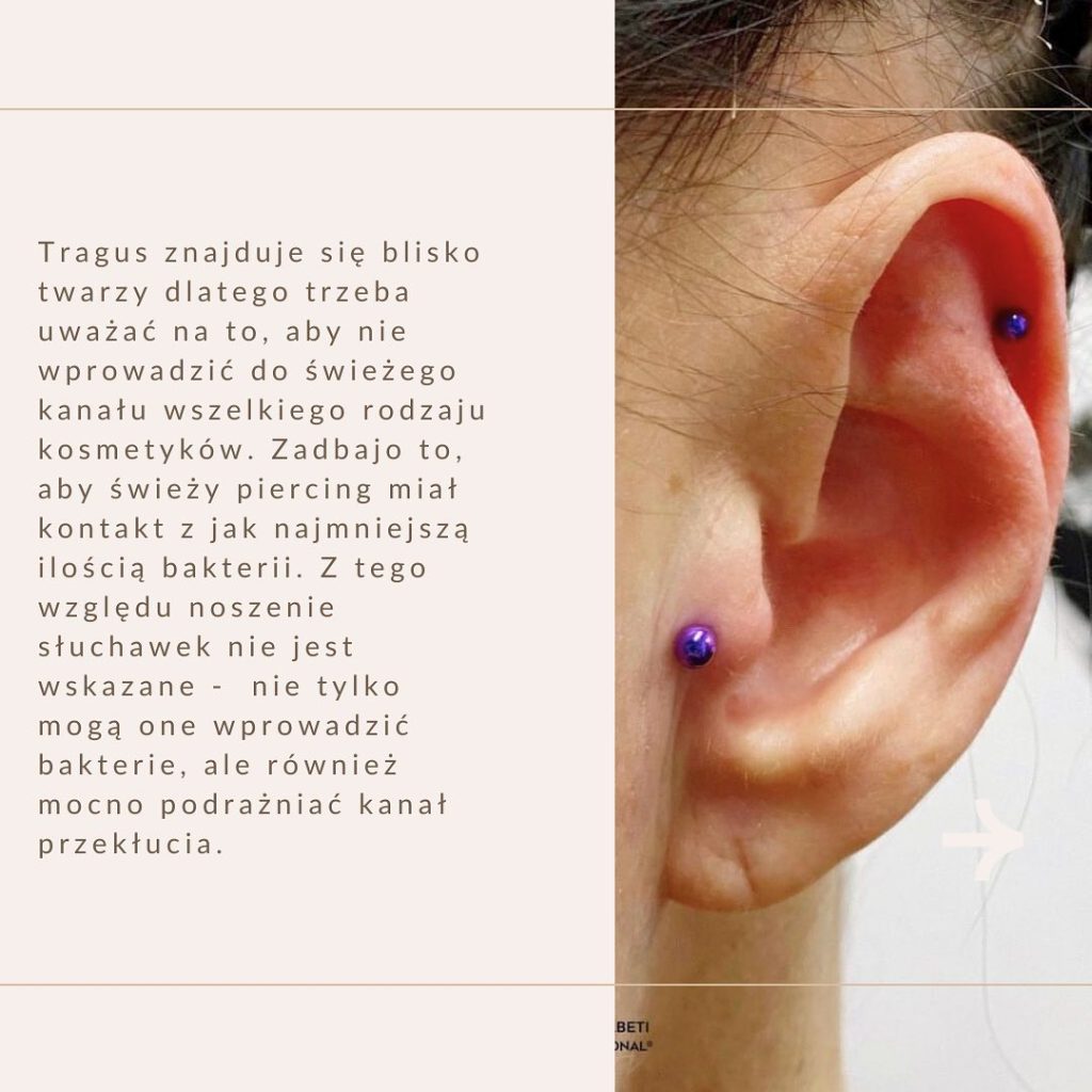 ✨ Tragus znajduje się blisko twarzy dlatego trzeba uważać na to, aby nie wprowadzić do świeżego kanału wszelkiego rodzaju kosmetyków. Powinno się zadbać o to, aby świeży piercing miał kontakt z jak najmniejszą ilością bakterii. Z tego względu noszenie słuchawek nie jest wskazane – nie tylko mogą one wprowadzić bakterie, ale również mocno podrażniać kanał przekłucia. Pozostaje się cieszyć z fascynującego przekłucia, jedynego w swoim rodzaju jakim jestbwła.snie tragus 🙂