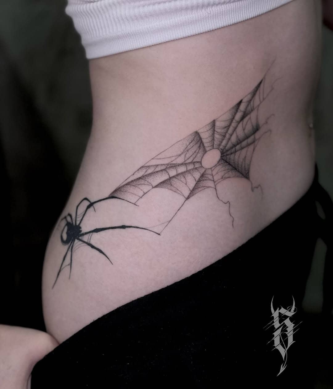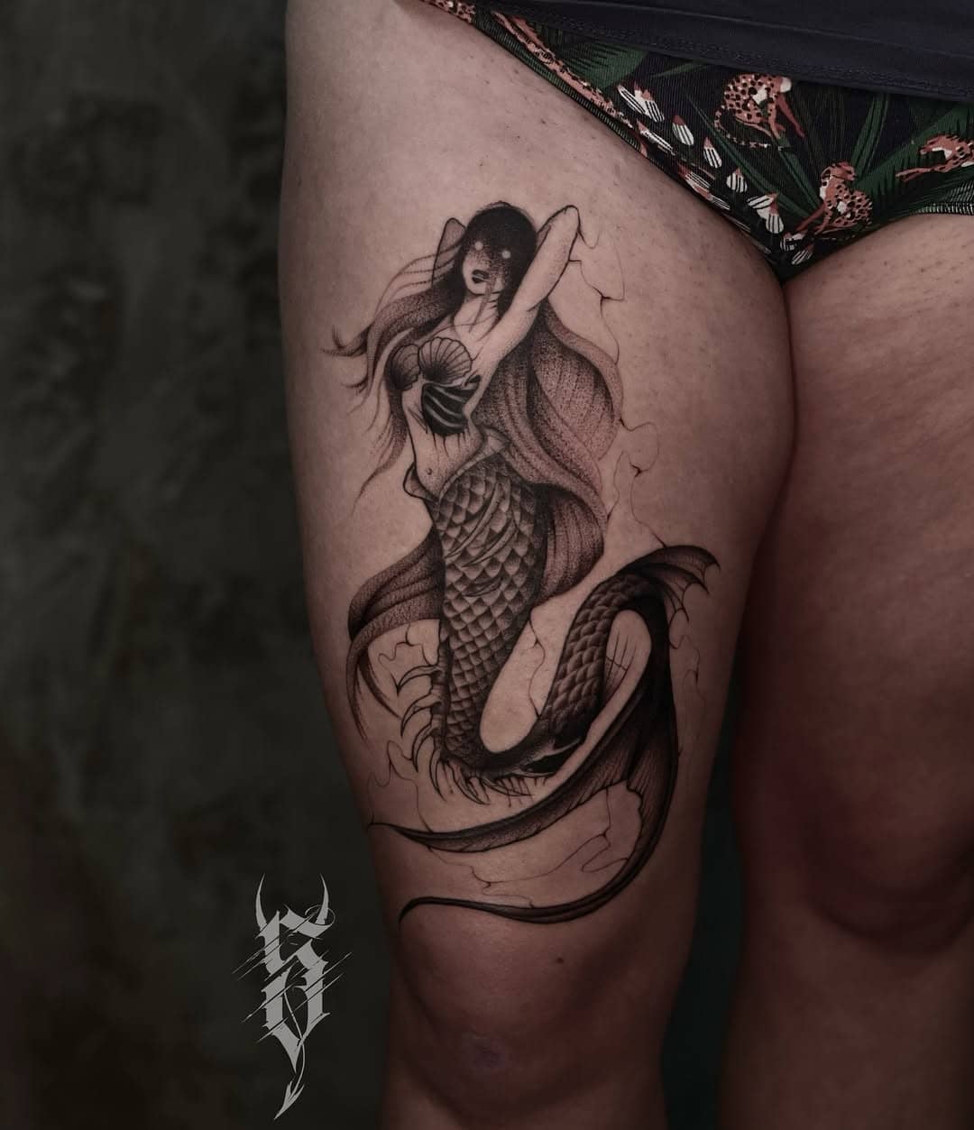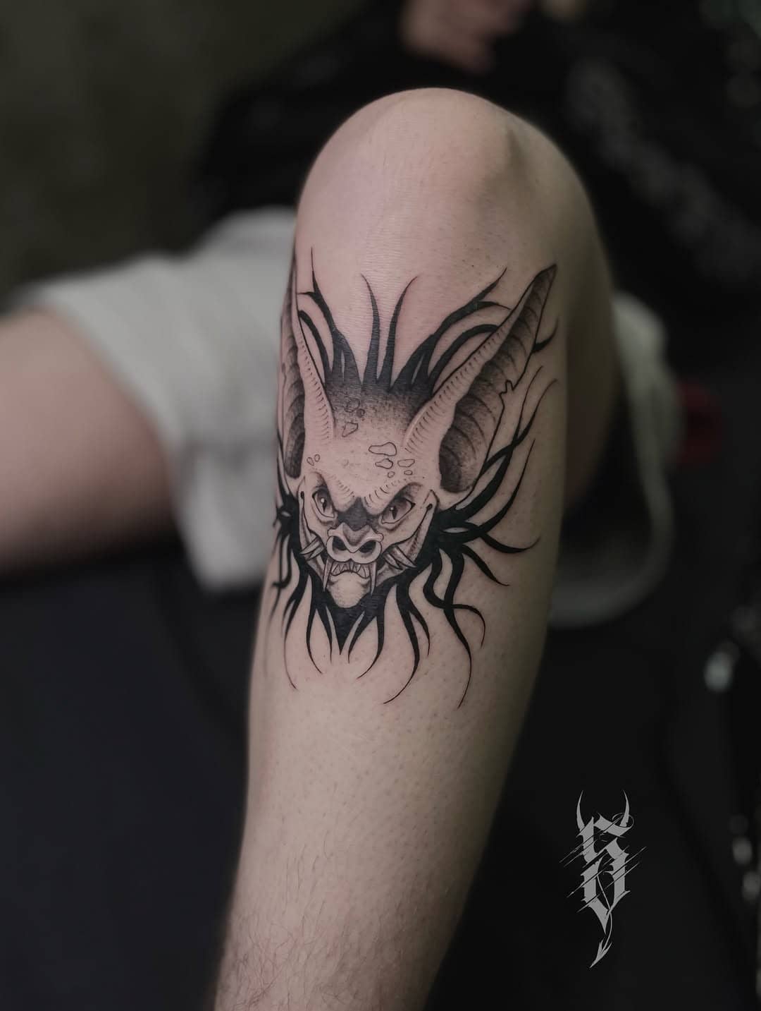 U Aliny znajdziecie przede wszystkim czerń i mocny kontrast. Wyraziste linie, płaskie wypełnienia, uproszczona forma. To tatuaż bez kompromisów, bez ozdobników. Jeśli pojawia się kolor, to tylko jako akcent – nigdy dla samego efektu. Tematyka? Trash, anime, magic, sex & violence. Ale też okultyzm, mitologia, fantasy. To jest świat, w którym czuje się najlepiej.