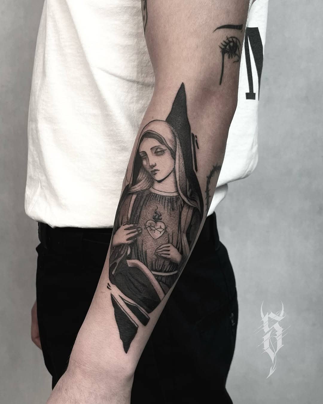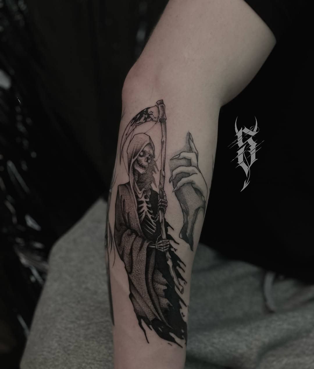 Alina - Nowy Lepszy Szatan trafiła do Sztormu w 2019 roku. Ma za sobą liceum plastyczne w Gdyni, więc sztuka była z nią od zawsze, ale zamiast malarstwa czy rysunku wybrała tatuaż. Zaczynała jako praktykantka, a bardzo szybko stała się jedną z osób, które nadają naszemu studiu charakter. Jak sama mówi – to forma, która daje jej więcej swobody i autentyczności.