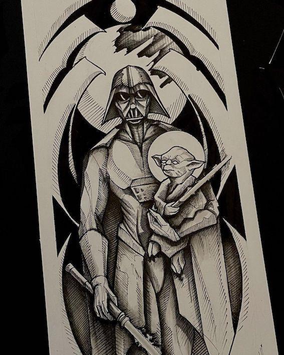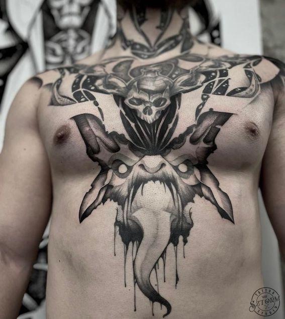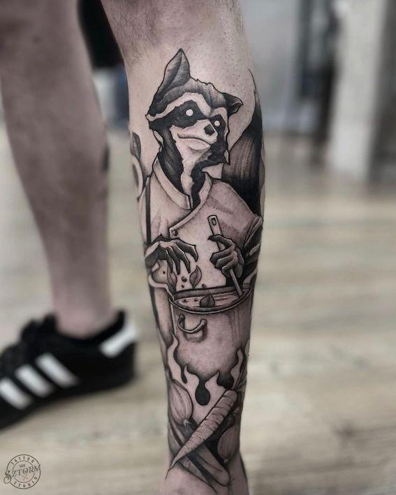 W jego tatuażach widać to co kocha najbardziej, i towarzyszy mu od dawna - rysunek. W ostatnich latach wkręcił się również w liternictwo. Mniejsze wrzutki czy większe kompozycje są mocno charakterystyczne, a ilość wytatuowanych „dziadów” ciężka do zliczenia. Tak samo jak kaligrafii wpisanych w węże.