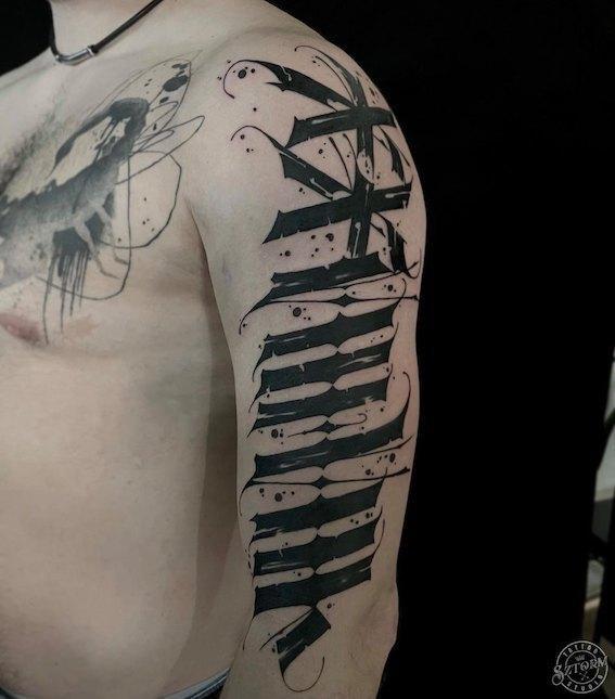 Tatuaż graficzny i kaligrafia Emil Gdańsk - Sztorm Tattoo