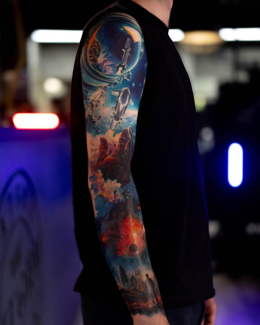 Tatuaż surrealistyczny w kolorze to forma sztuki, która wykracza poza granice rzeczywistości, łącząc różne elementy i tworząc niezwykłe kompozycje. Artysta tatuażu w tej technice może się posunąć daleko poza granice wyobraźni, łącząc elementy z różnych światów, jak zwierzęta z ludzkimi cechami, abstrakcyjne figury czy tajemnicze symbole. Ta technika pozwala na swobodę twórczą i eksperymentowanie z kolorami, tworząc niezwykłe i unikalne tatuaże.