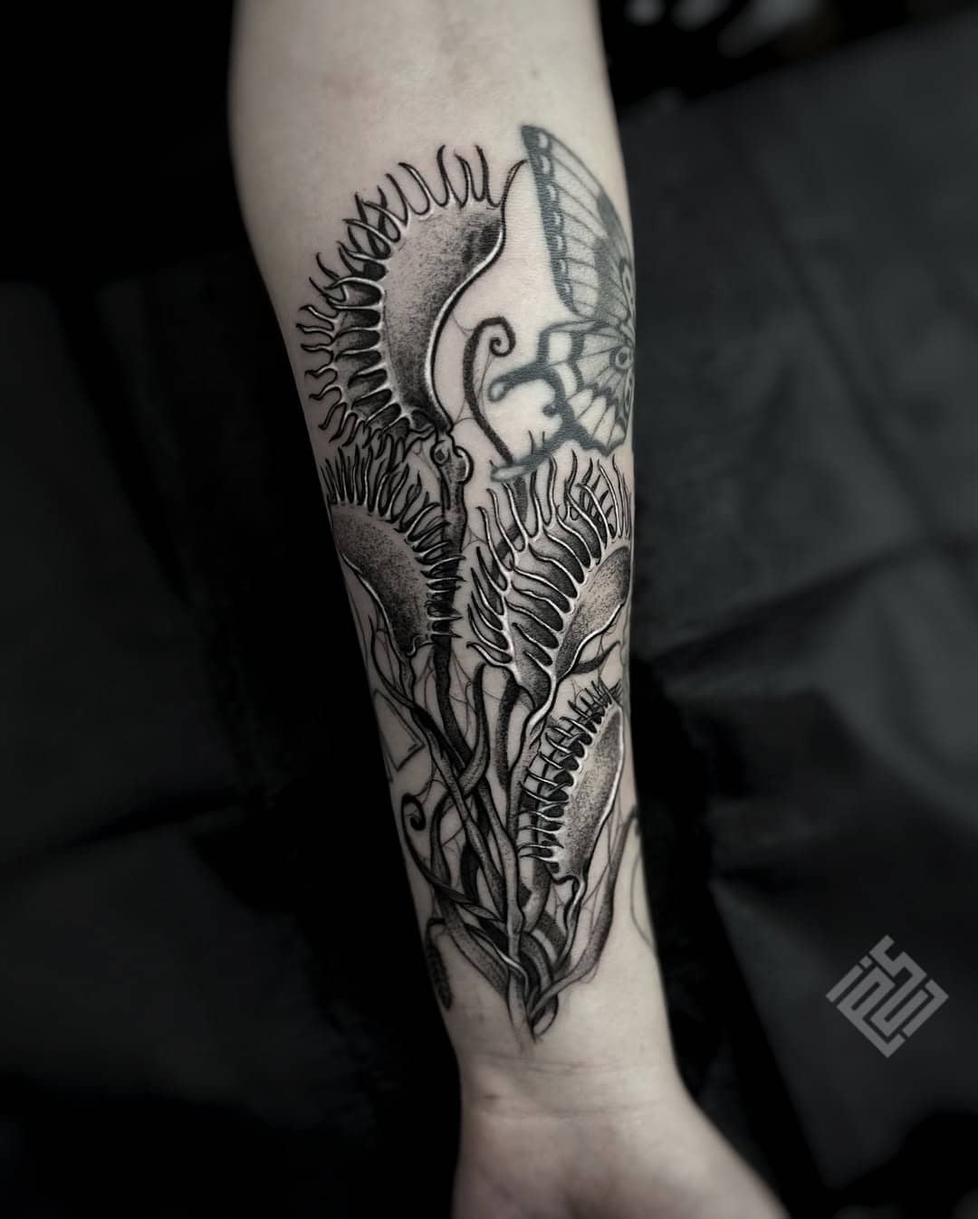 Tatuaże Marty mają w sobie miękkość i mrok jednocześnie. Duże formaty, mocny kontrast, wyraźne detale – jej prace wyglądają jak wyjęte z wykreowanej przez nią krainy. To nie są tatuaże dla każdego. To tatuaże dla osób, które chcą czegoś wyjątkowego i niepowtarzalnego, gdzie każdy element ma znaczenie i buduje atmosferę całego projektu.