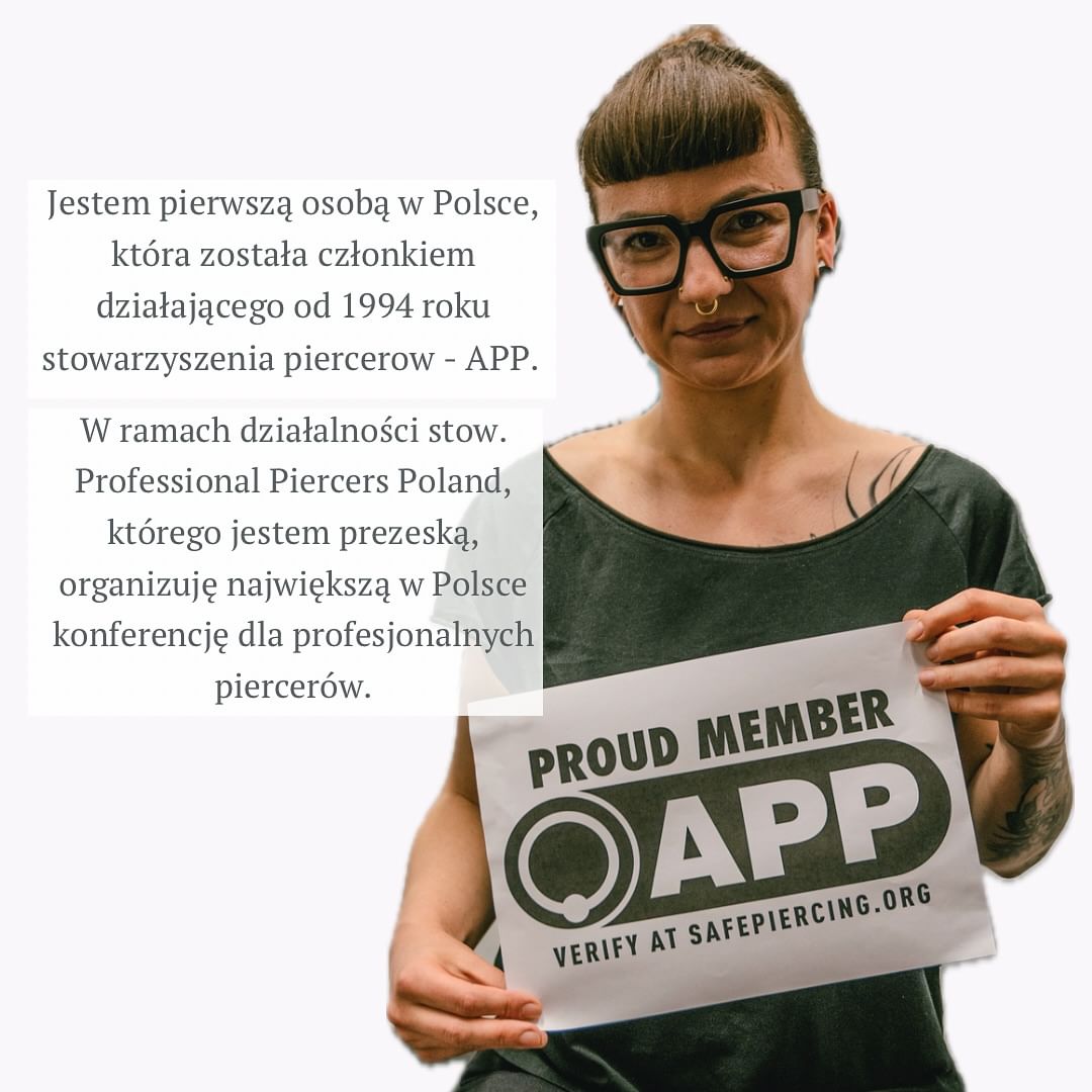 Skąd przydomek polskiej matki piercingu zapytacie? Już śpieszymy z odpowiedzią. Prezeska Profesional Piercers Poland razem ze stowarzyszeniem, o którym wspominaliśmy powyżej podnosi poziom polskiego piercingu. Ich celem jest przede wszystkim wspieranie polskich piercerów w pogłębianiu wiedzy z zakresu anatomii, technik piercingu, higieny. Istotnym jest zwiększanie wiedzy i świadomości wśród osób zainteresowanych tą dziedziną oraz edukacja na temat ryzyka związanego z przekłuwaniem ciała u niewykwalifikowanych osób. Dodatkowo jest organizatorką pierwszej w Polsce konferencji dla piercerów. W tym roku odbyła już kolejna edycja.